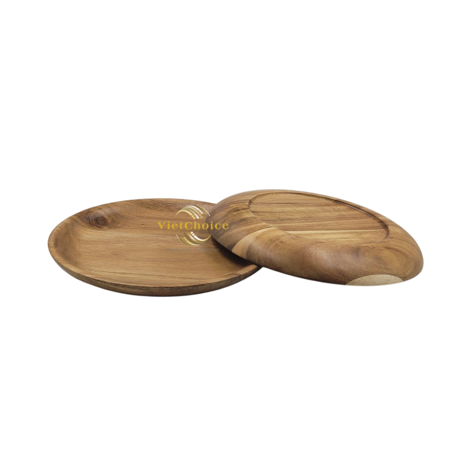 จานไม้โลโก้สั่งทำ OEM ภาชนะใส่อาหารจากธรรมชาติสำหรับแบรนด์สินค้าฉลากส่วนตัว