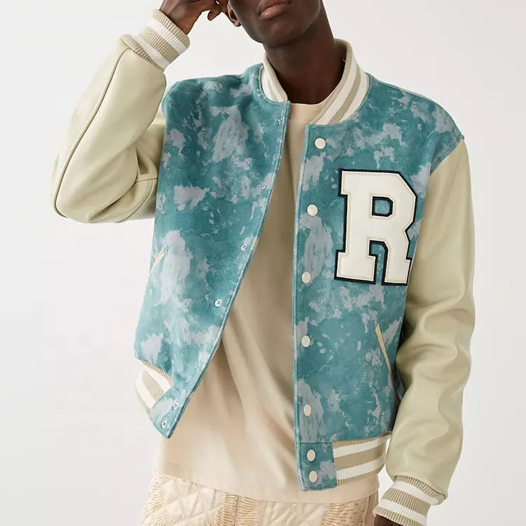 เสื้อแจ็กเก็ตผ้ากำมะหยี่สำหรับผู้ชายปักโลโก้ได้ตามต้องการแขนหนังแกะสำหรับฤดูหนาวปรับแต่งได้