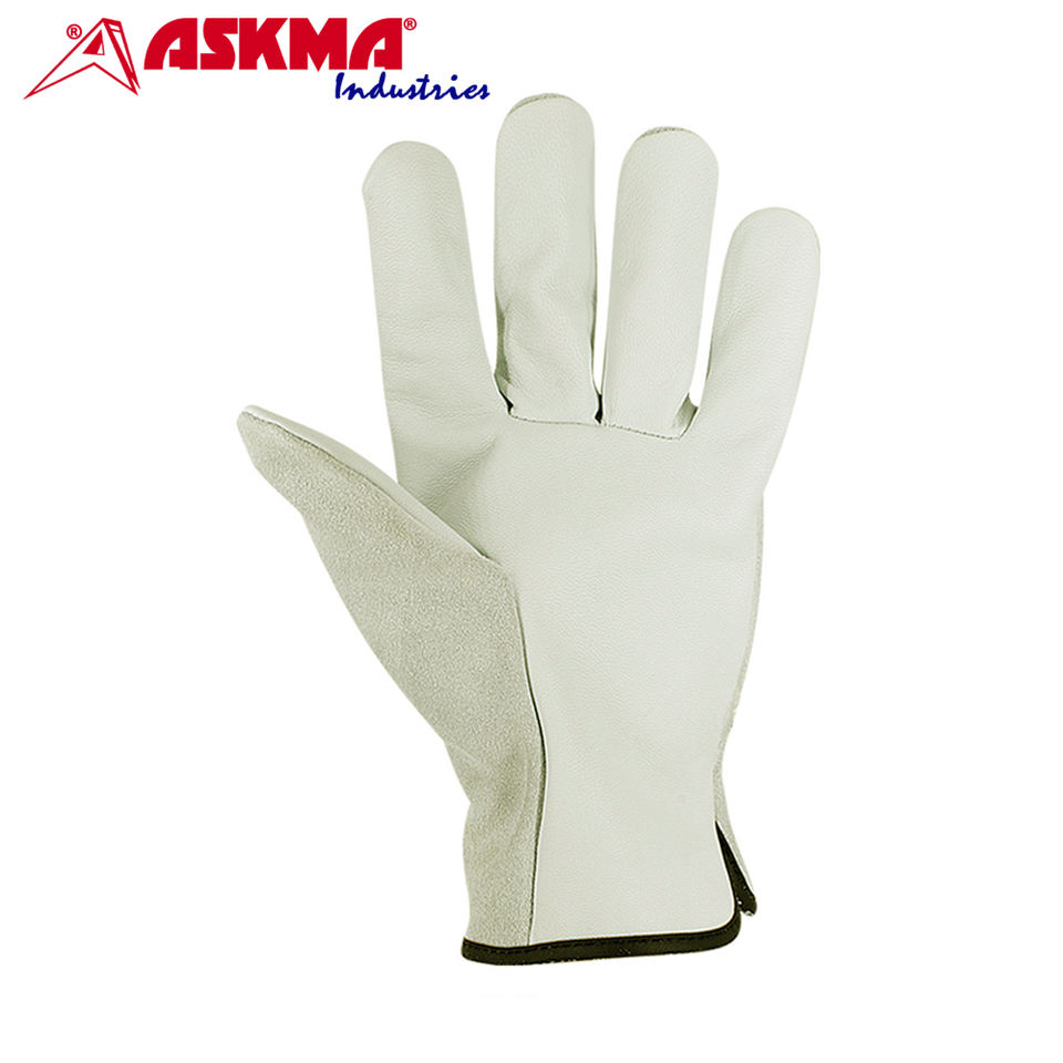 ถุงมือทำงานโลโก้แบบกำหนดเองถุงมือป้องกันการบาดทรงตรงปลอกนิ้วทำจากหนังควายแพะถุงมือป้องกันแขน