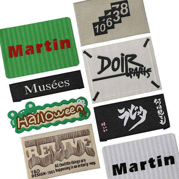 ป้ายทอโลโก้แบบกำหนดเองสำหรับเสื้อผ้า ป้ายติดเสื้อผ้าแบบพับปลายที่ยั่งยืนสำหรับกระเป๋าและรองเท้า