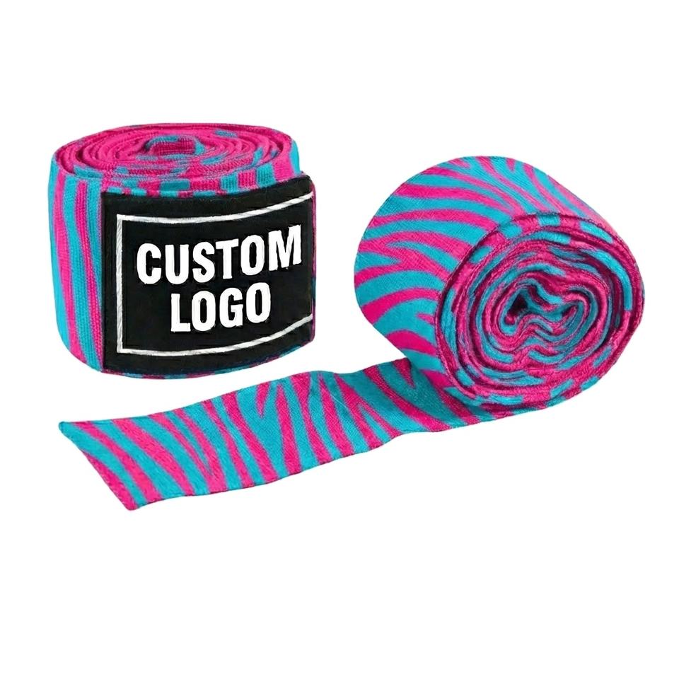 ผ้าพันมือชกมวยลายม้าลายโลโก้สั่งทำพิเศษ ผ้าฝ้ายยืดหยุ่น รองรับข้อมือ