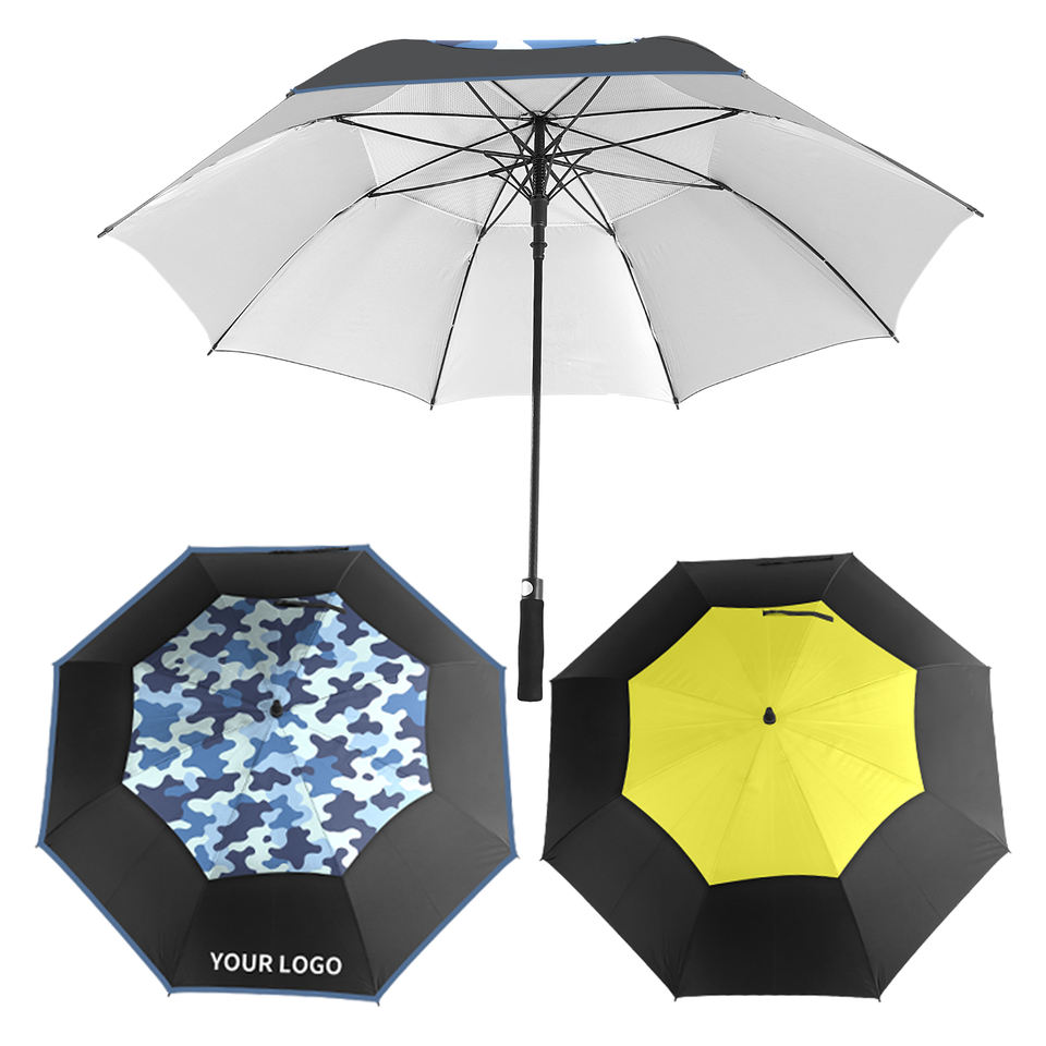 Custom Logo and size 54/60/62/68/72 inch Golf Umbrella Automatic Open large windproof uv golf umbrella Parasols in good quality