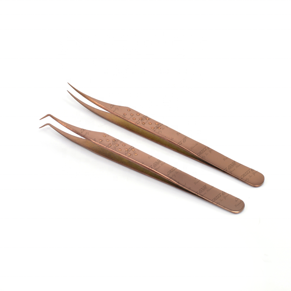 Product Name:90 Degree Volume Rose Gold Tweezers Stainless Steel Eyelash Extension