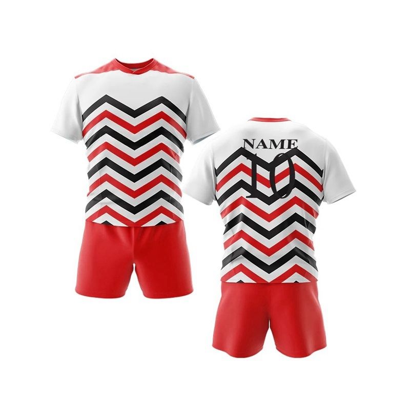 เสื้อเจอร์ซีย์ฟุตบอลรักบี้เสื้อกีฬาระบายอากาศพิมพ์ซับลิเมชันแบบเต็มตัวโลโก้คลับออกแบบได้ตามต้องการ