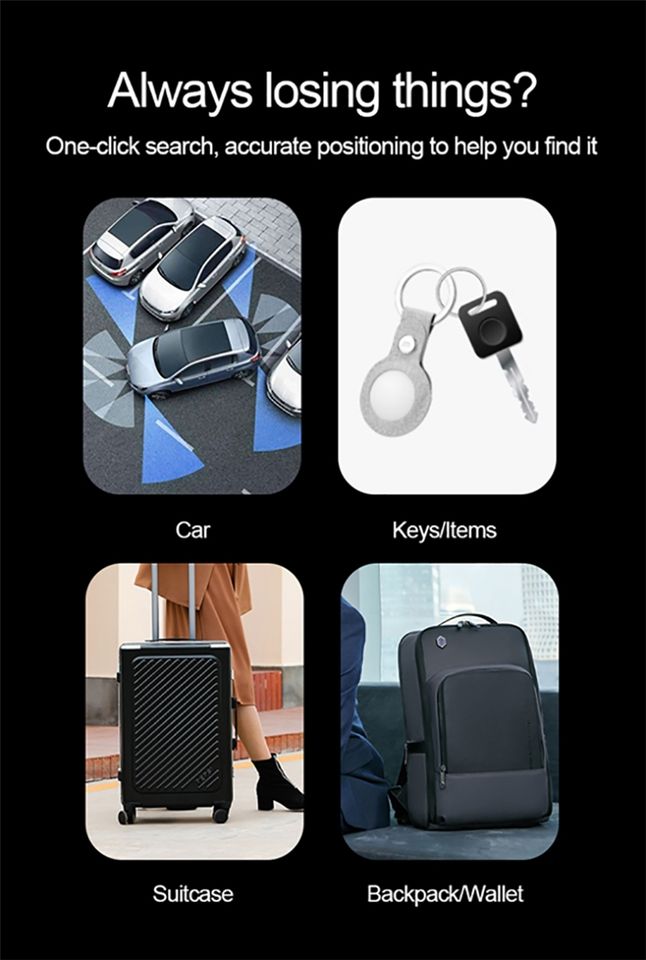 โลโก้แบบกำหนดเองสำหรับอุปกรณ์ติดตามสัตว์เลี้ยงแบบไร้สายขนาดเล็ก กันน้ำระดับ IPX7 พร้อมระบบเตือนภัยอิเล็กทรอนิกส์ ป้องกันการสูญหาย ใช้เป็นพวงกุญแจอัจฉริยะสำหรับรถยนต์