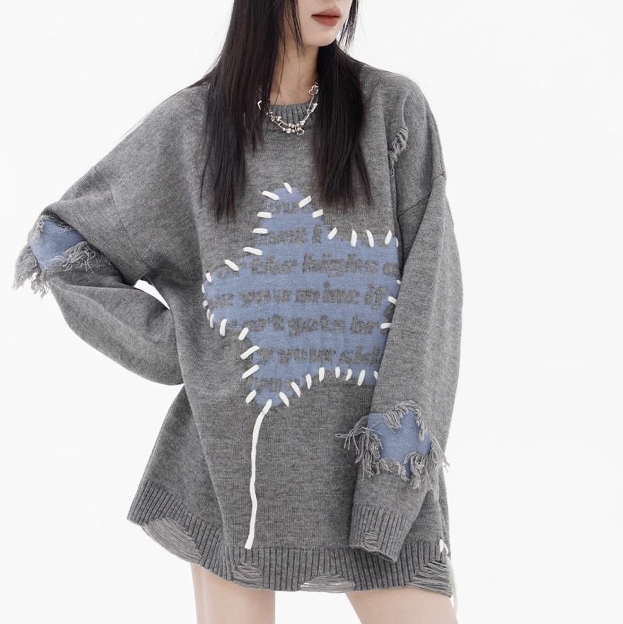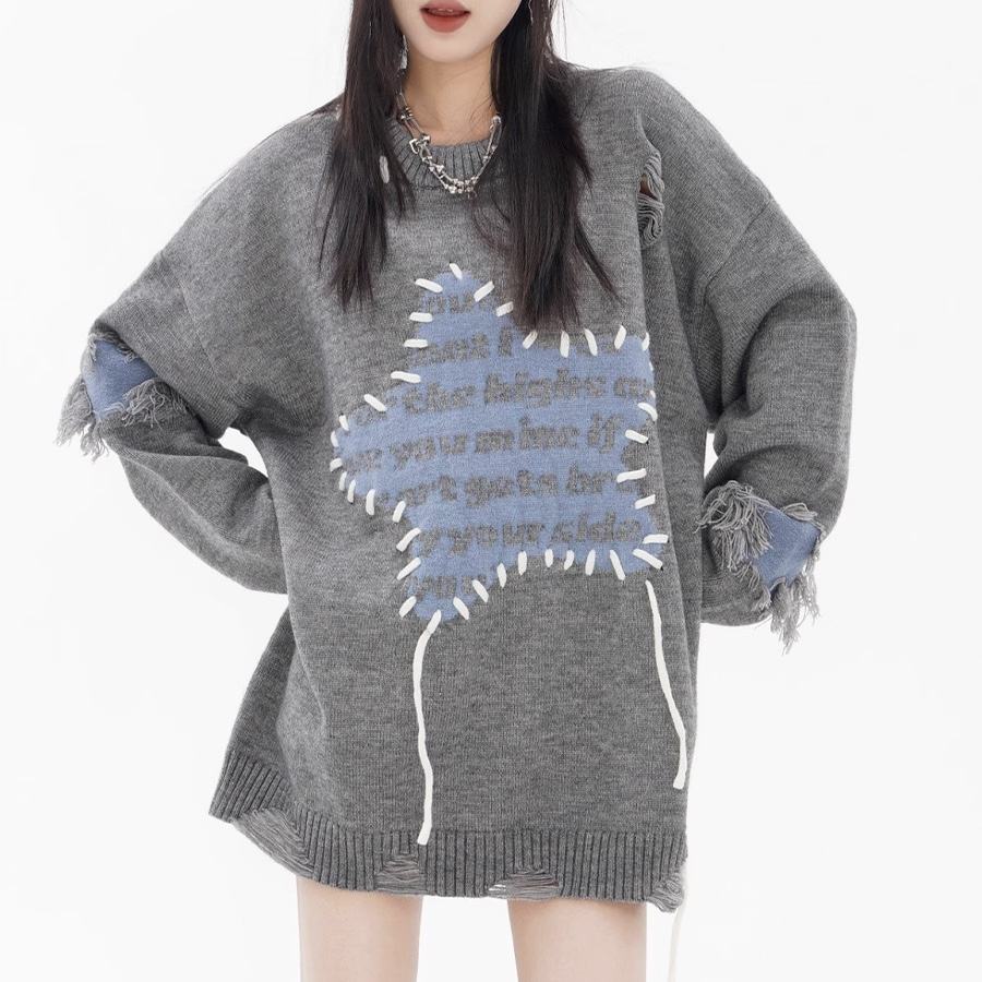 Custom LogoODM&OEM Irregular Holes Contrast Color Star Rope Decoration Knitted Men's and Women's Sweaters Solid Color