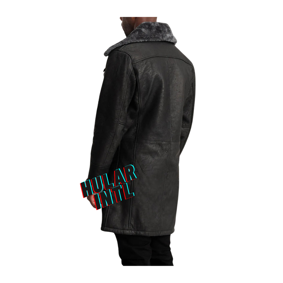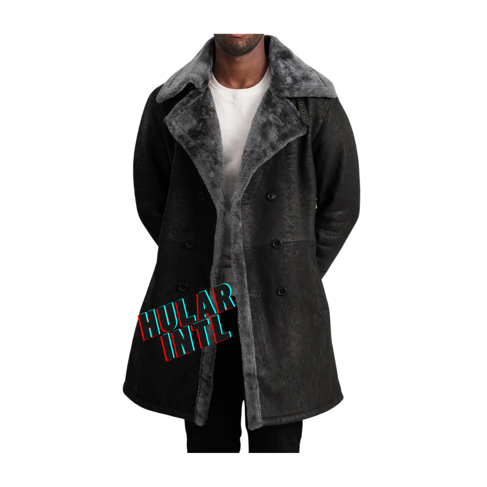 แจ็คเก็ตขี่มอเตอร์ไซค์แบบหนาเสื้อโค้ทแบบ B3ยาวทำจากหนังแกะแท้บุด้วยขนแกะ