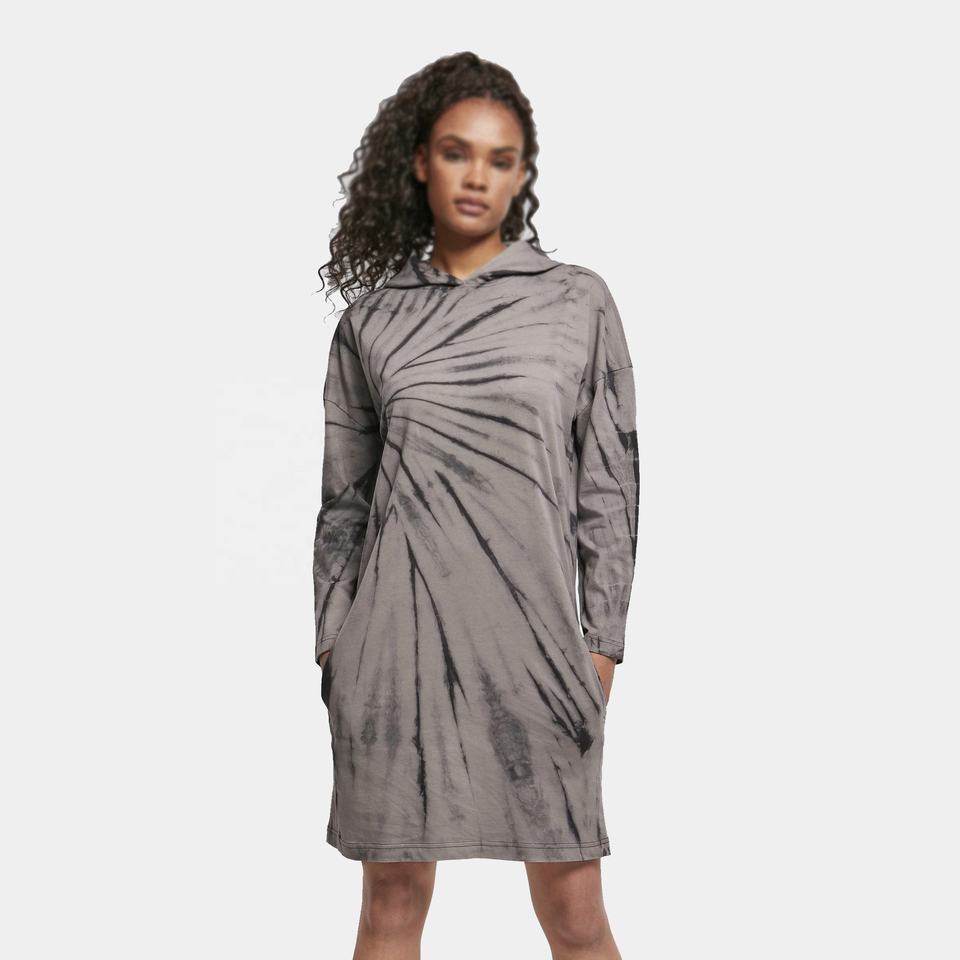 ชุดเดรสมีฮู้ดมัดย้อมสำหรับผู้หญิงชุดเดรสลำลองแนวสตรีทบิดด้านหน้าแขนยาว
