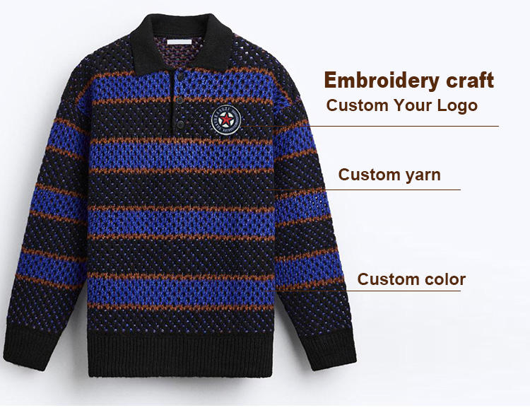 เสื้อโปโลลายทางผ้าถักแจ็คการ์ดแขนยาวสำหรับผู้ชายเสื้อกันหนาวเสื้อโปโลคอหมีอบอุ่นเสื้อกันหนาวคอโปโล