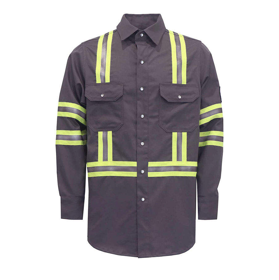 เสื้อเชิ้ตแขนยาวผู้ชายแบบกำหนดเอง ทนไฟได้ตามมาตรฐาน NFPA2112 สำหรับงานเชื่อม เสื้อทนไฟ