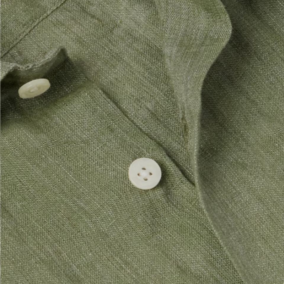 สไตล์:เสื้อเชิ้ตผู้ชายผ้าลินิน 100% คอปกแบบเปิด ทรงลำลอง สีพื้น