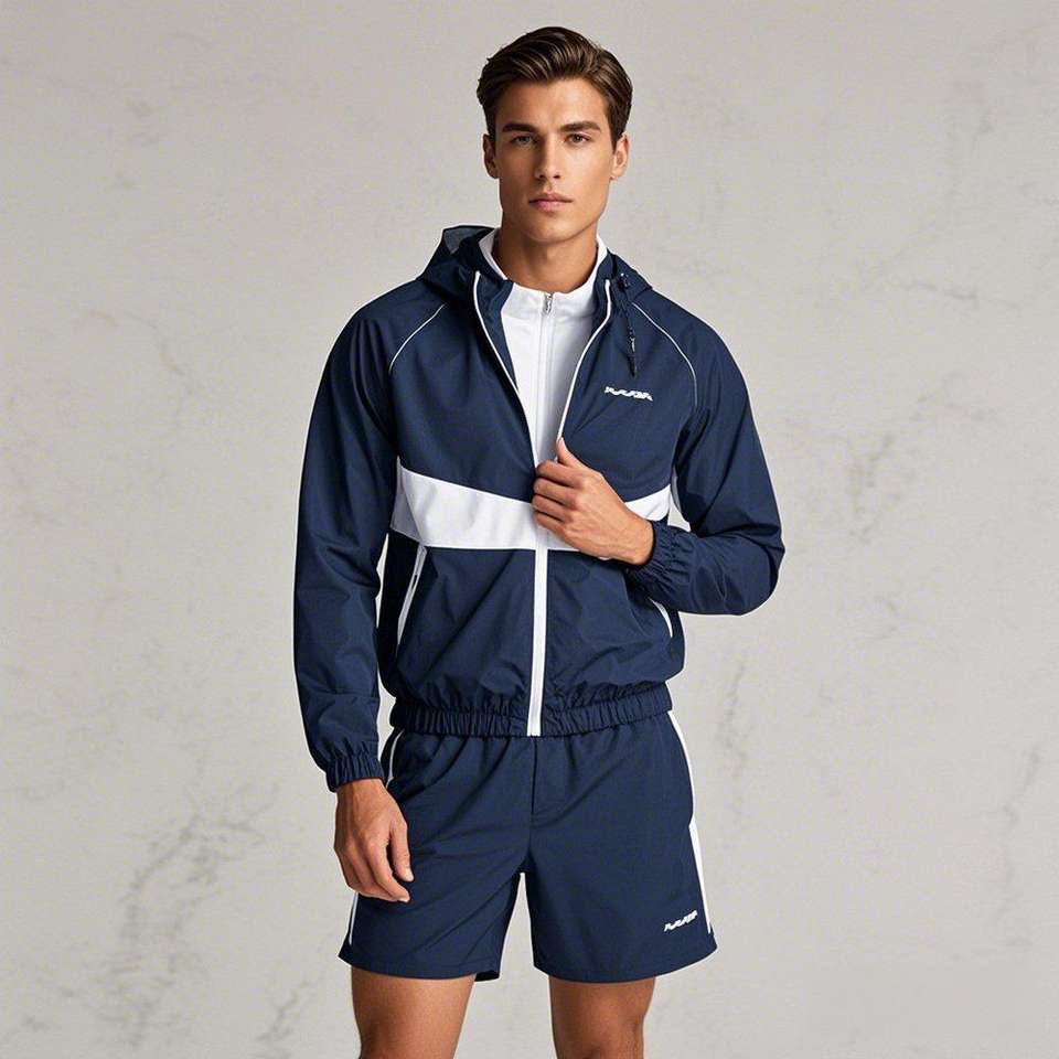 ชุดวอร์มมีซิปสำหรับผู้ชายเสื้อกันลมสองชิ้นผ้าไนลอนกันน้ำแขนยาวออกแบบได้ตามต้องการ