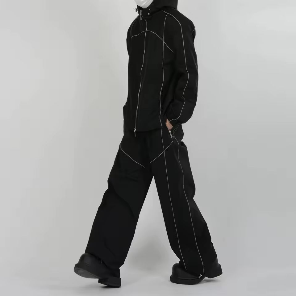ชุดวอร์มผู้ชายแบบมีซิป ผ้าไนลอน/อะคริลิก ระบายอากาศได้ดี กันน้ำ กันลม สะท้อนแสง แบบหลวม สไตล์ลำลอง