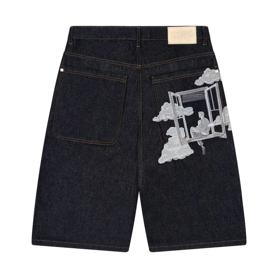 กางเกงยีนส์ขาสั้นทรงหลวมแบบสั่งทำสำหรับผู้ชายและผู้หญิง OEM ยีนส์ฤดูร้อน สตรีทแวร์แบบเป็นทางการ แต่งลายปัก งานคุณภาพสูง ระบายอากาศได้ดี เป็นมิตรกับสิ่งแวดล้อม