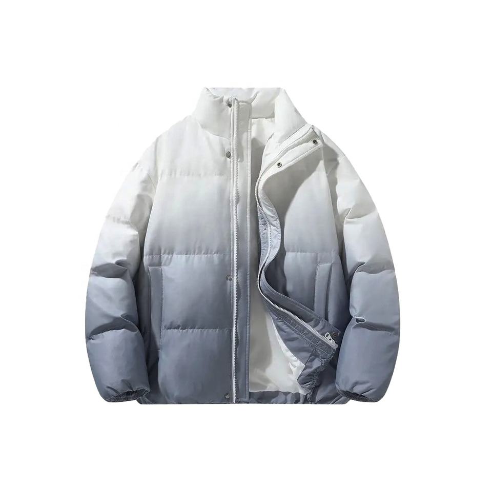 เสื้อแจ็คเก็ตพัฟเฟอร์บุขนเป็ดสำหรับผู้ชาย ทรงหลวม พิมพ์ลายไล่สีแบบดิปได สำหรับฤดูหนาว ให้ความอบอุ่น