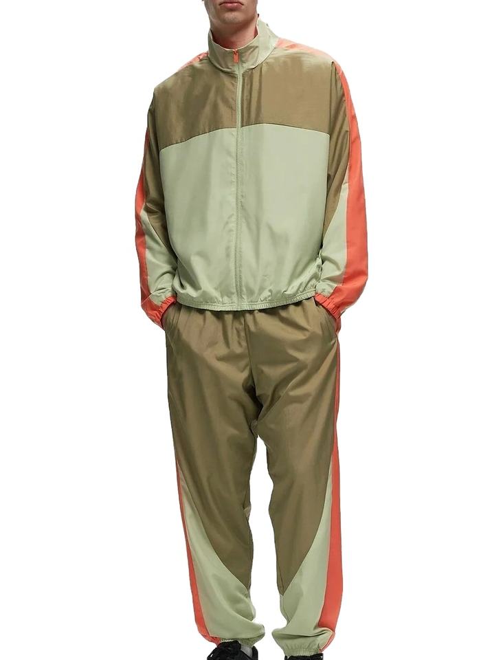 ชุดวอร์มแบบหลวมพิเศษ แจ็คเก็ตซิปติดกระดุม ชุดสองชิ้น ผ้าไนลอนสีตัดกัน สำหรับผู้ชาย แห้งเร็ว รุ่น 2026