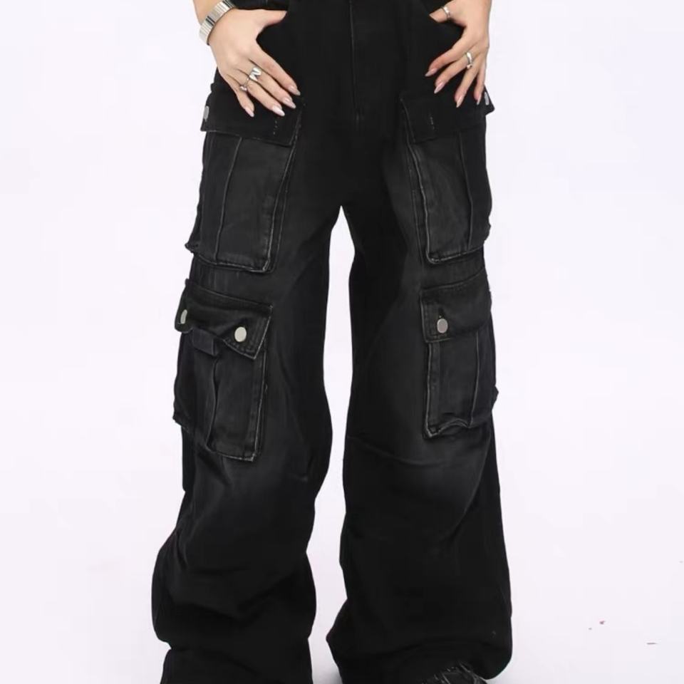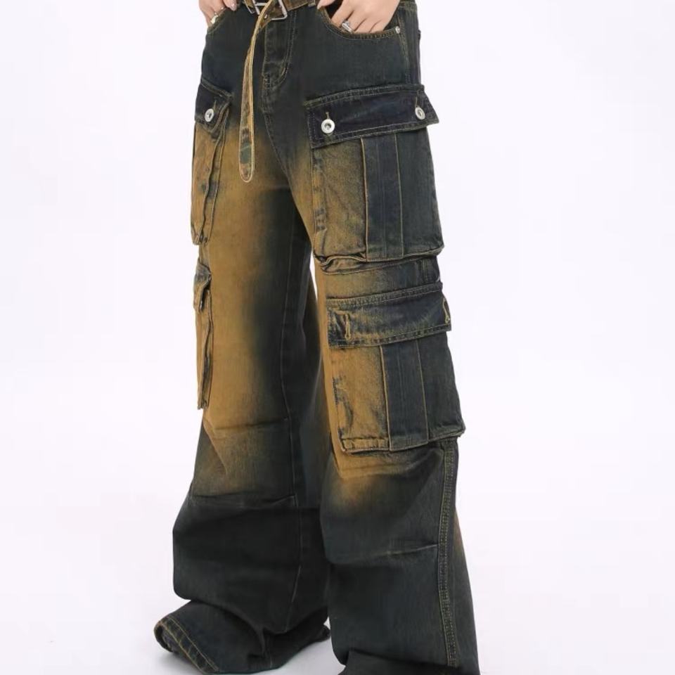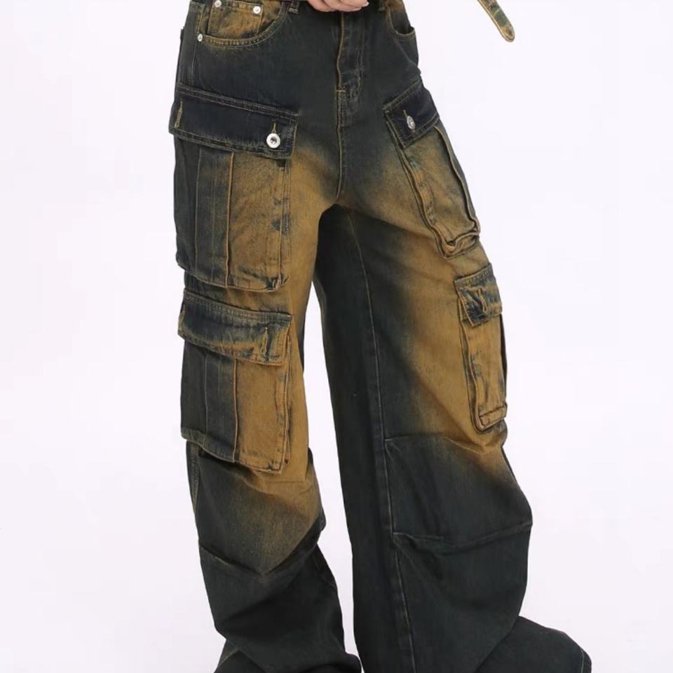 กางเกงยีนส์คาร์โก้ทรงหลวมสไตล์วินเทจ ล้างสี ขาดๆ หลายกระเป๋า ยูนิเซ็กส์ แฟชั่นสตรีทฮิปฮอป ไซส์ใหญ่ สั่งทำได้ ขั้นต่ำน้อย