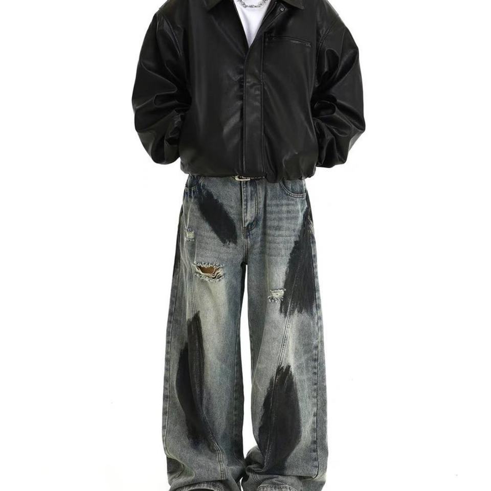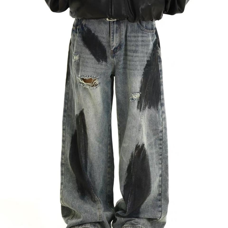 กางเกงยีนส์ทรงตรงขาดๆ สไตล์ฮิปฮอป วินเทจ ระบายอากาศได้ดี สตรีทแวร์ สีกลาง ลายกราฟฟิตี สำหรับทุกเพศ ฤดูใบไม้ผลิ ฤดูร้อน ฤดูใบไม้ร่วง รับผลิตตามสั่ง ขั้นต่ำน้อย