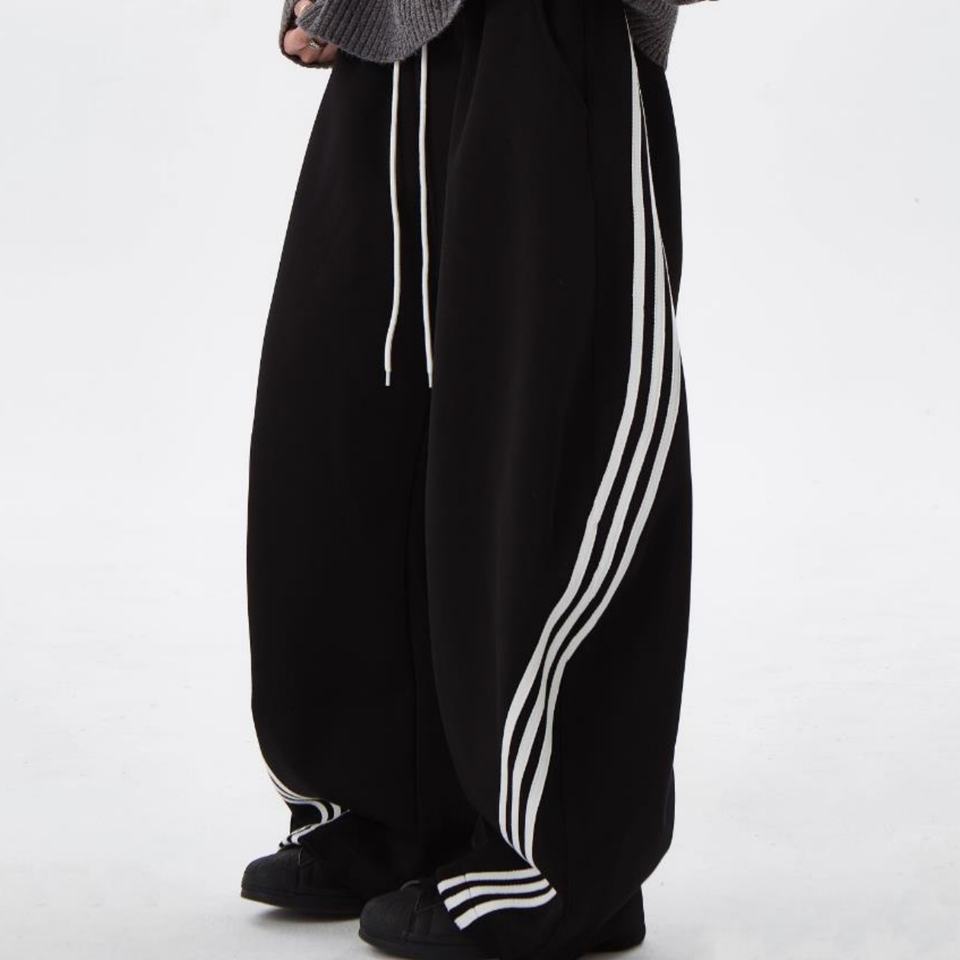 กางเกงวอร์มลำลองทรงหลวมเอวกลาง น้ำหนักเบา ลาย 3 แถบ สไตล์โอเวอร์ไซส์ สำหรับผู้ชาย สตรีทแวร์ รับผลิตตามสั่ง MOQ ต่ำ