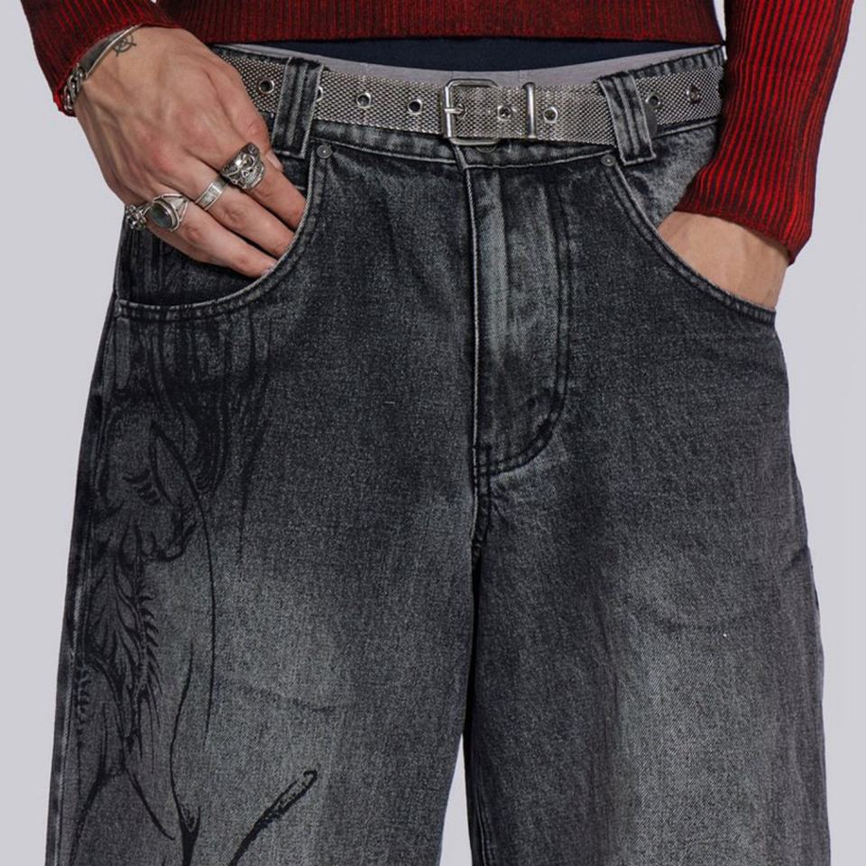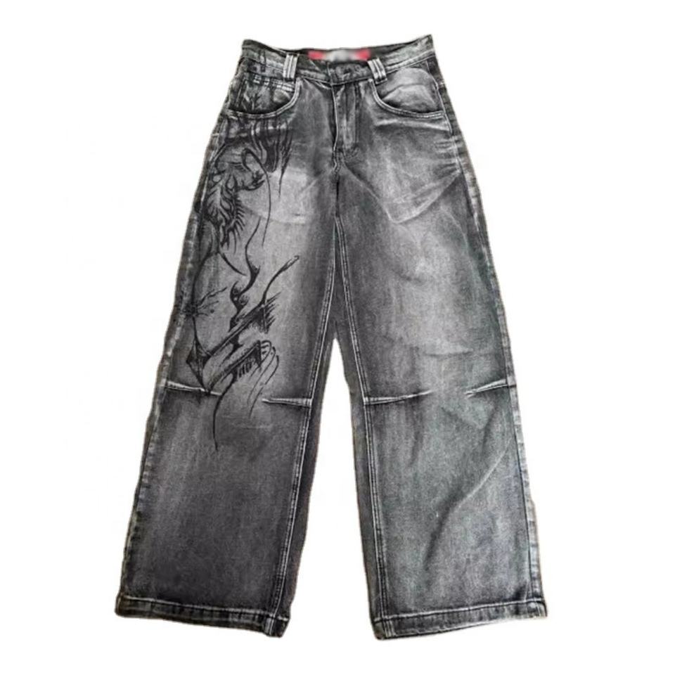 กางเกงยีนส์ทรงแบ็กกี้สไตล์วินเทจสำหรับผู้ชาย พิมพ์ลายตามสั่ง MOQ ต่ำ