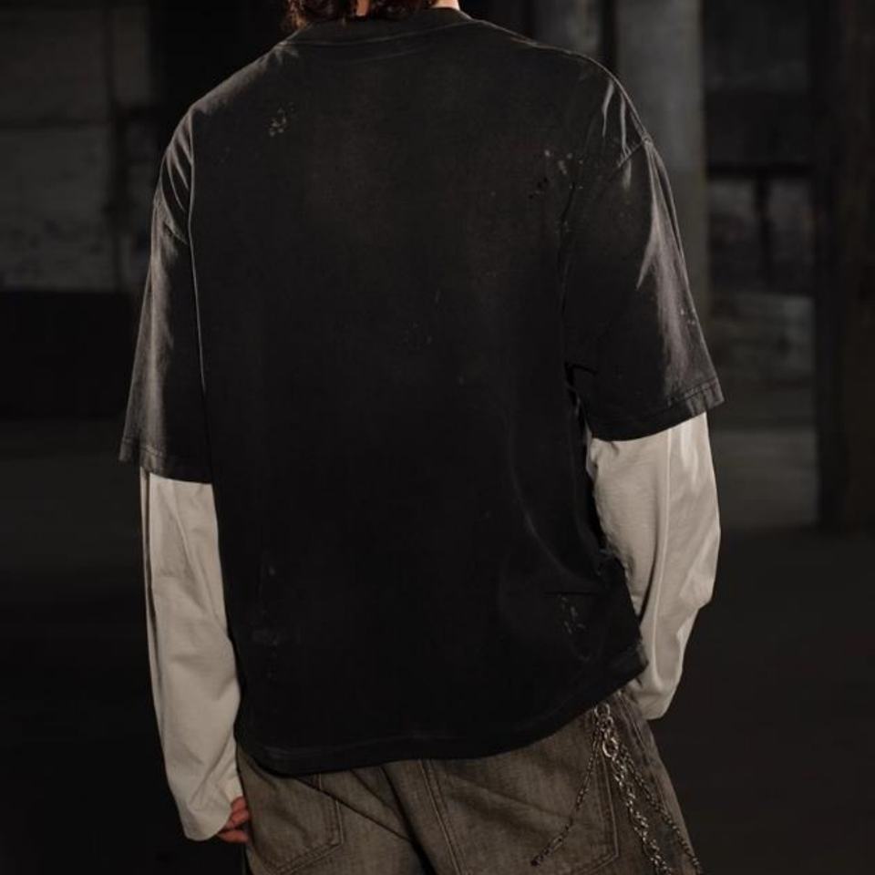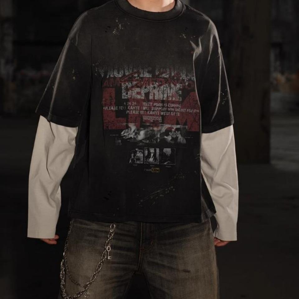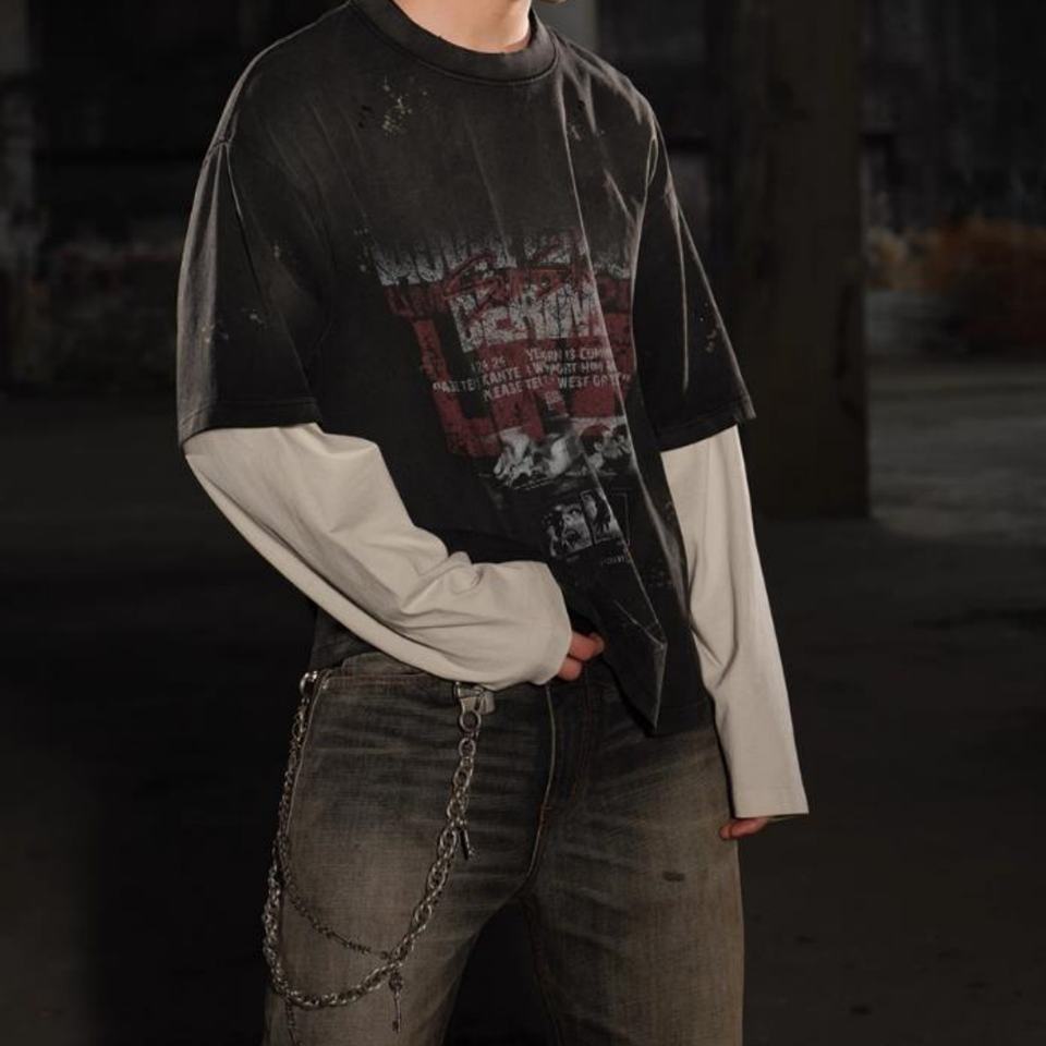 เสื้อยืดแขนยาวสองชิ้นแบบวินเทจฟอกสีสไตล์ดิสเทรส ผลิตตามสั่ง ขั้นต่ำน้อย