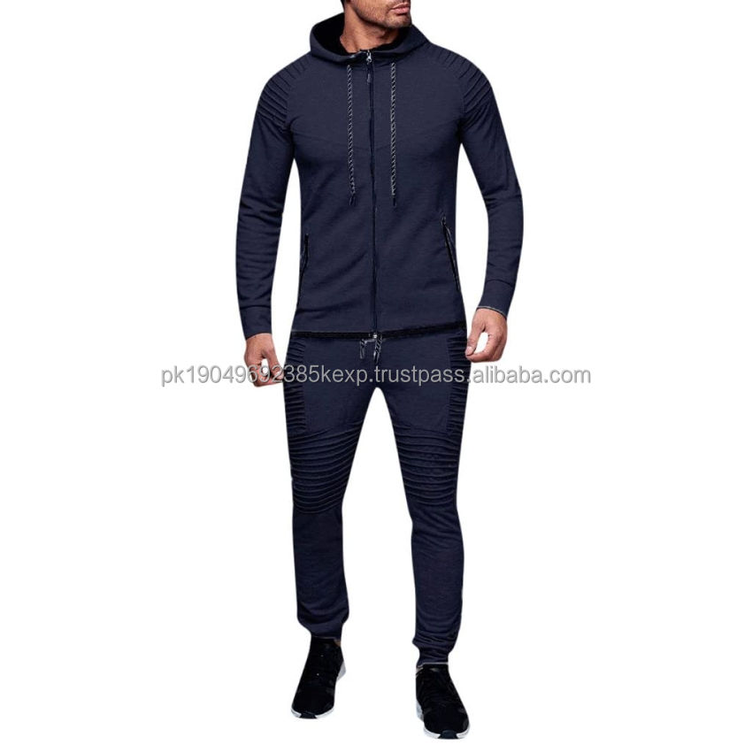 กางเกงจ็อกเกอร์ผู้ชายผ้าโพลีเอสเตอร์คุณภาพสูงแบบกำหนดเอง OEM พร้อมเสื้อฮู้ดซิป ชุดกีฬาผู้ชายทรงสลิมฟิต ชุดวอร์มแบบกำหนดเอง