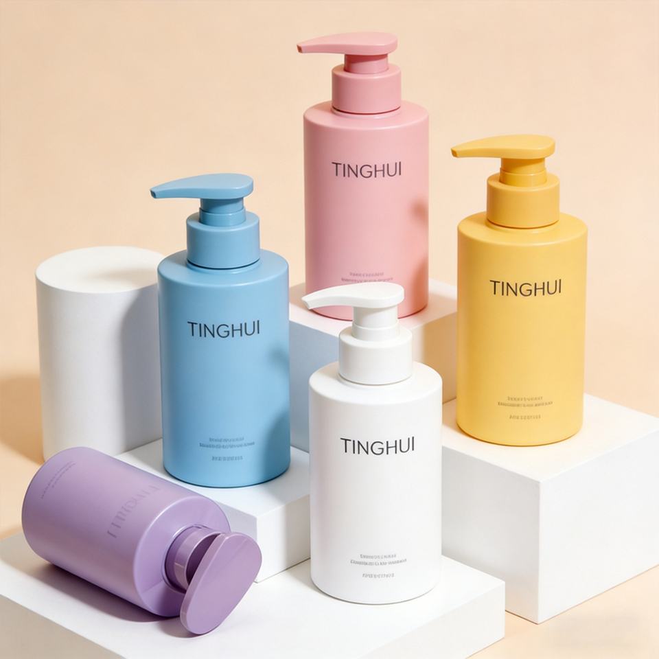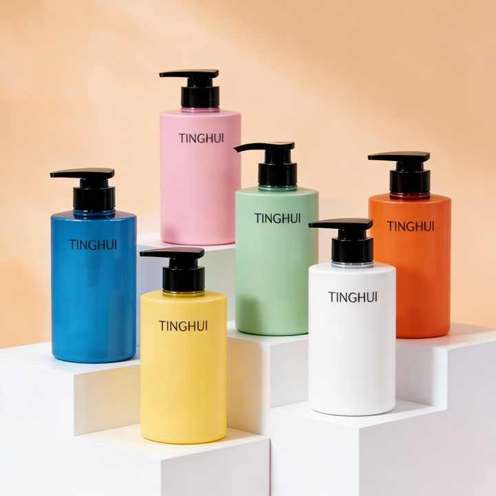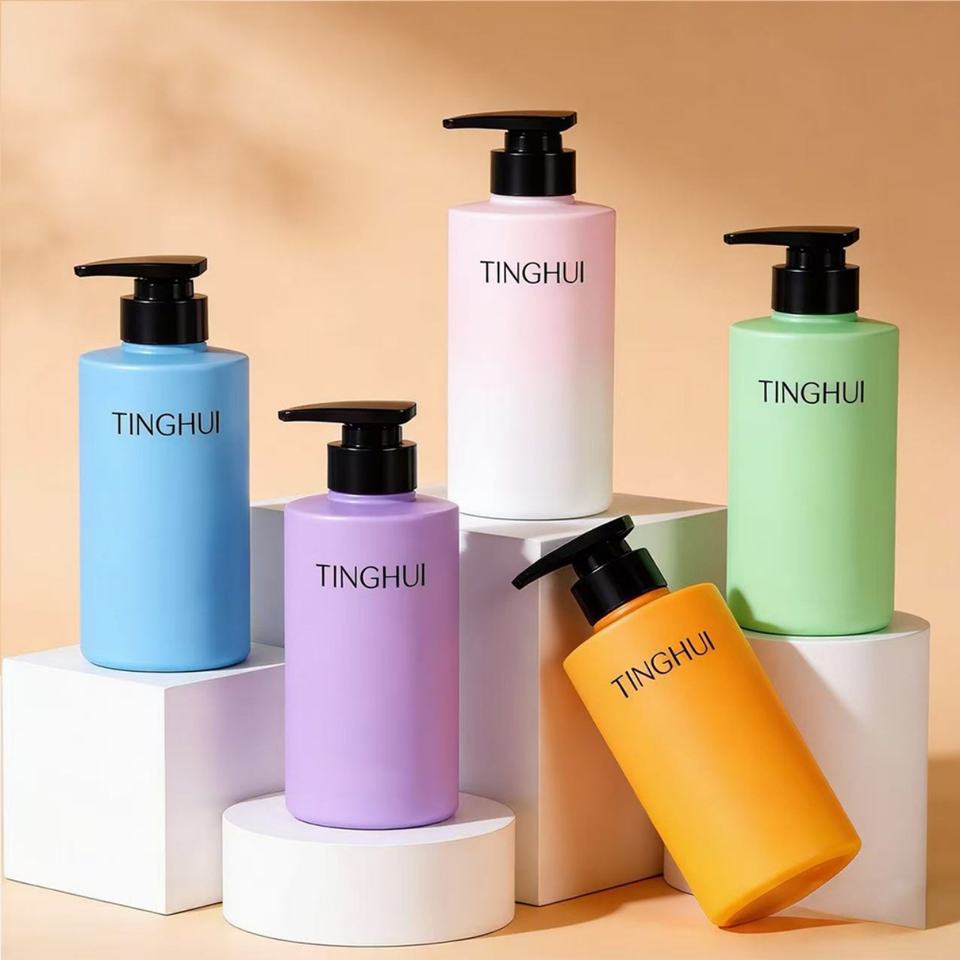 ขวดแชมพูพลาสติกแบบรีไซเคิลขนาด 300 มล. 500 มล. แบบกำหนดเองได้ พร้อมหัวปั๊มโลชั่นสำหรับเซรั่มบำรุงผิว
