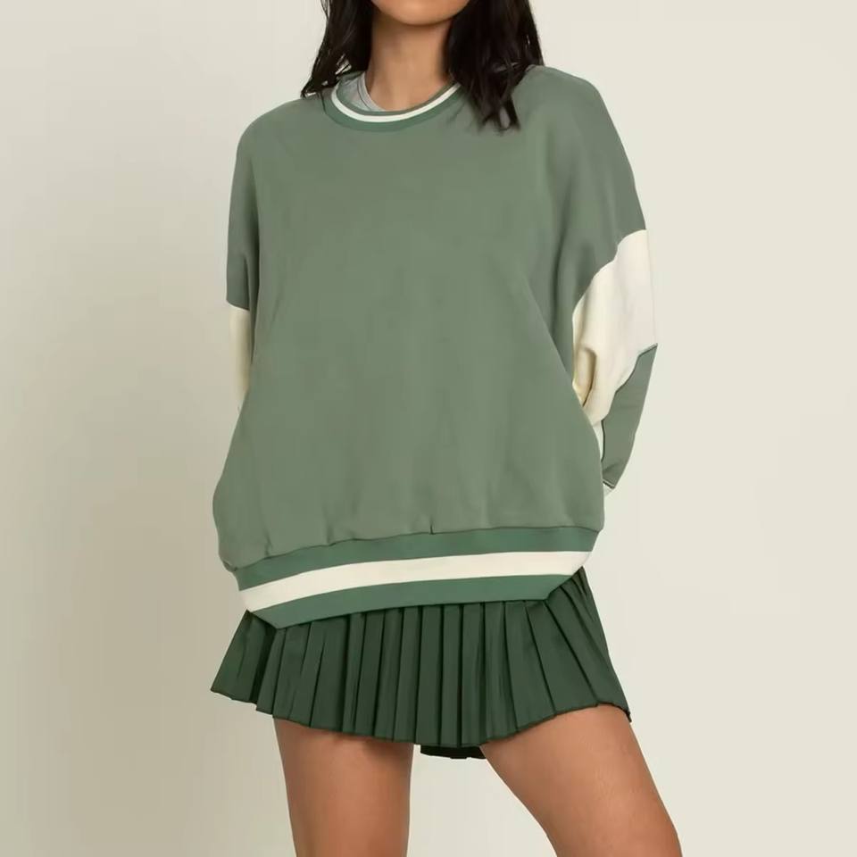 เสื้อสวมหัวคอกลมผ้าคอตตอนฟลีซโอเวอร์ไซส์ผ้าคอตตอนเปิดไหล่สำหรับสตรีผ้าซักได้หรูหราออกแบบได้ตามต้องการเป็นมิตรต่อสิ่งแวดล้อม