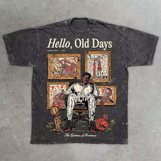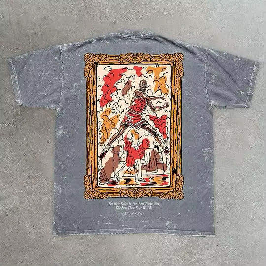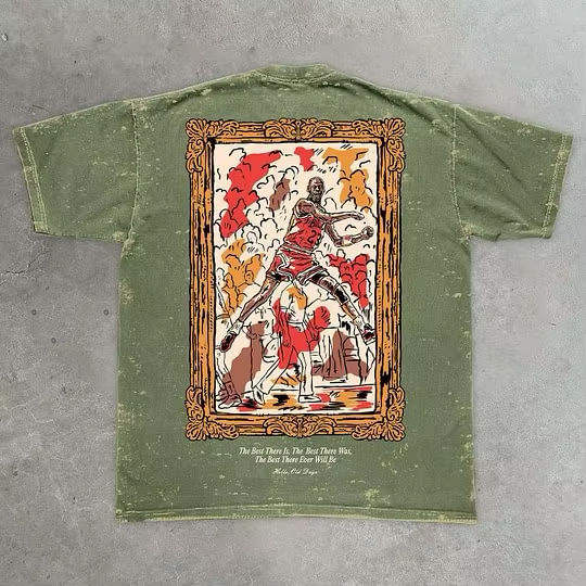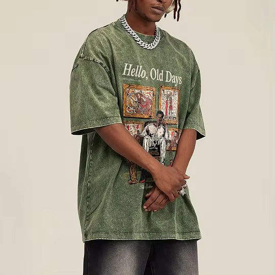 เสื้อยืดคอตตอนพิมพ์ลายกราฟิกสไตล์วินเทจลำลองทรงโอเวอร์ไซส์แบบย้อมสีเอซิดสุดหรู