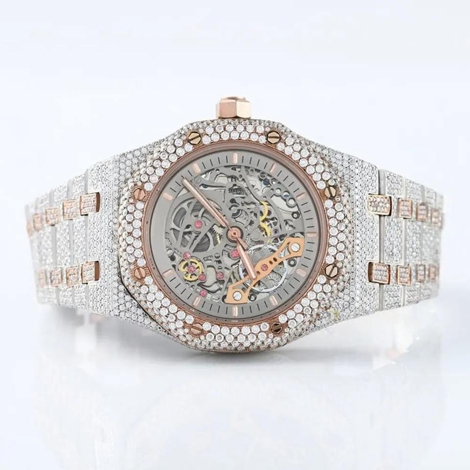 นาฬิกาข้อมือสำหรับผู้ชายสายสแตนเลสควอทซ์ตัดเพชรเพชรแบบฮิปสเตอร์ปรับแต่งได้ตามต้องการ