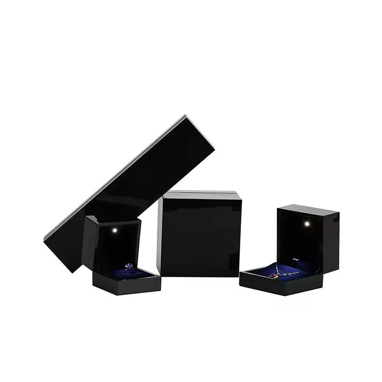 กล่องบรรจุภัณฑ์เครื่องประดับกำมะหยี่สีดำสุดหรูพร้อมไฟ LED สำหรับสร้อยคอ แหวน และเครื่องประดับอื่นๆ พร้อมโลโก้แบบกำหนดเอง