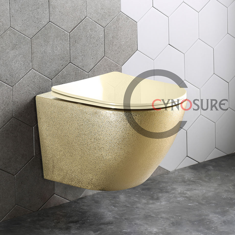 ชุดส้วมห้องน้ำสีทองแบบปิดแล้ว,โถส้วมแขวนผนังแบบโถส้วมสีทองสไตล์ทรงกลม
