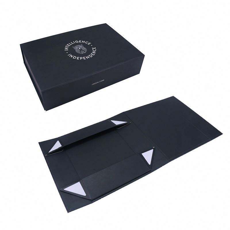 กล่องกระดาษรีไซเคิลสีดำสุดหรูกล่องพับได้เคลือบยูวีฝาแม่เหล็กกรอบรูปนูนสำหรับรองเท้าเครื่องประดับ