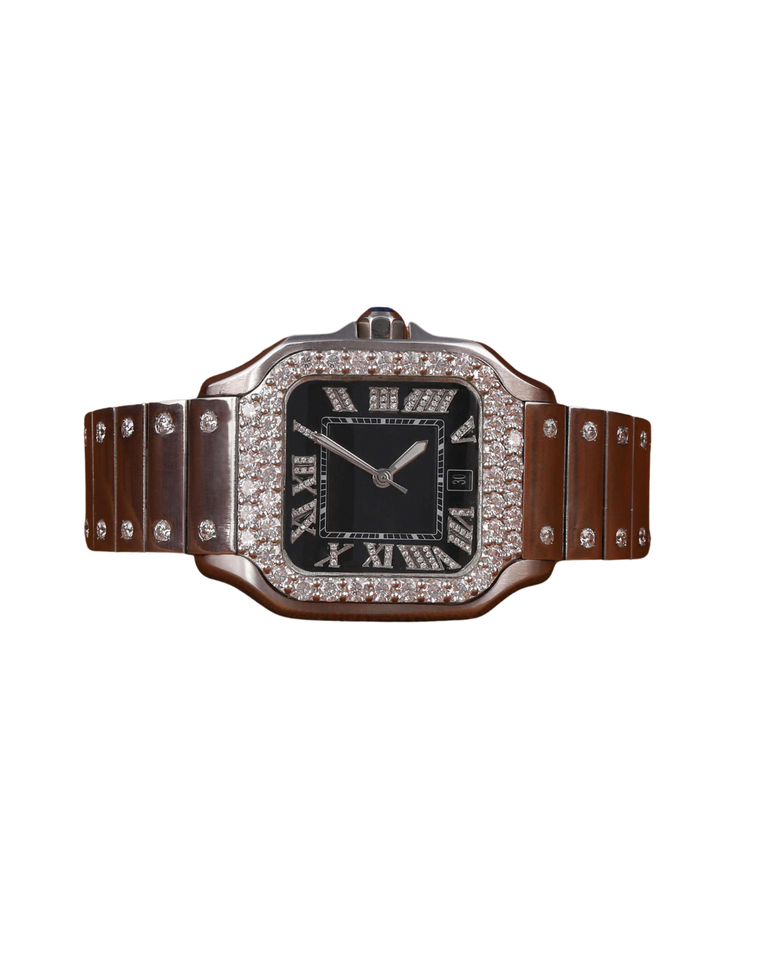 นาฬิกาข้อมือควอตซ์สแตนเลสสตีลสีทองคำขาวประดับเพชรโมอิสซาไนต์แบบฮิปฮอปสุดหรูหราสีดำ