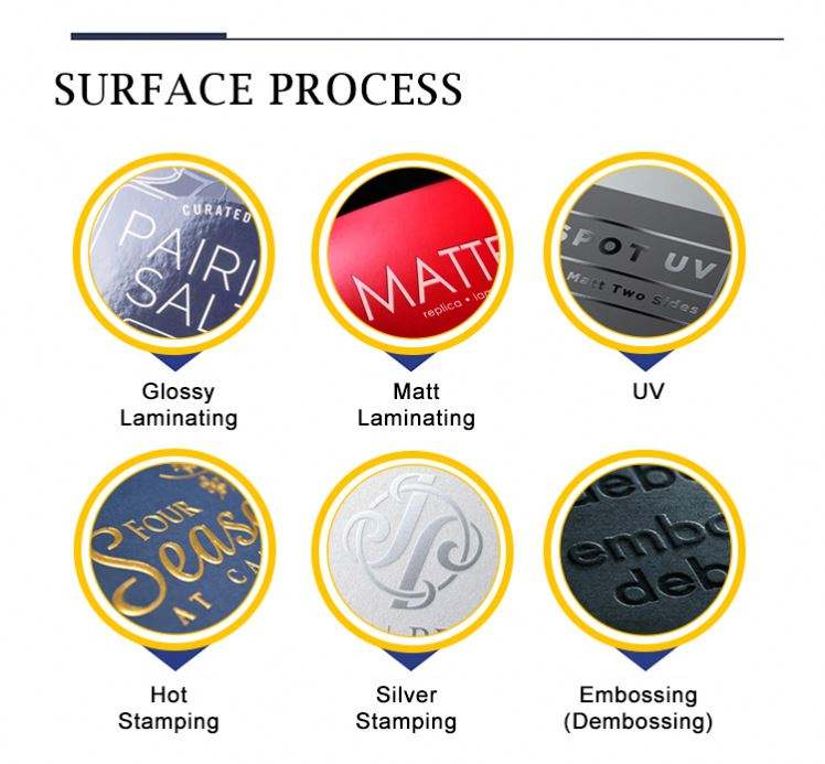 การปั๊มนม, การพิมพ์ออฟเซต, การพิมพ์เฟล็กโซ, การทำลายนูน/การทำลายนูน, การพิมพ์แบบดิจิตอล, ตราประทับทองคำ, การพิมพ์ยูวี, ลามิเนตการจัดการการพิมพ์