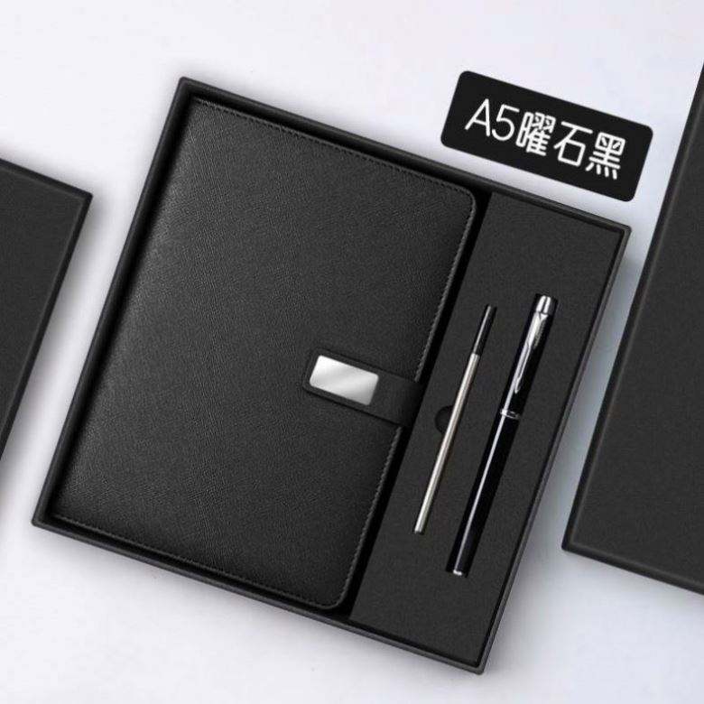 ชุดของขวัญธุรกิจสุดหรู สมุดบันทึกหนัง PU คุณภาพสูง พร้อมแก้วเก็บความร้อน ปากกา และกล่องของขวัญ พร้อมสลักโลโก้
