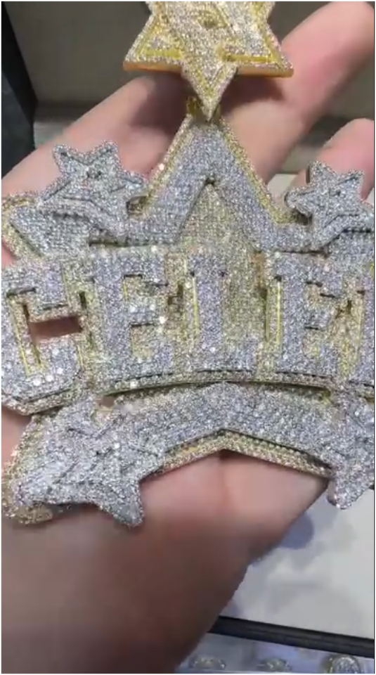 จี้เพชรโมอิสซาไนต์ VVS ชุบทอง 18K สไตล์ฮิปฮอปสุดหรู พร้อมจี้เงินแท้ 925 สลักชื่อได้ตามต้องการ