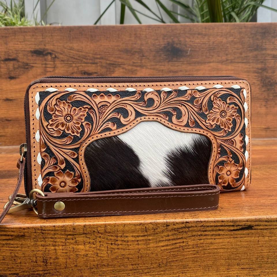 กระเป๋าสตางค์หนังวัวแบบมีซิปทำมือ