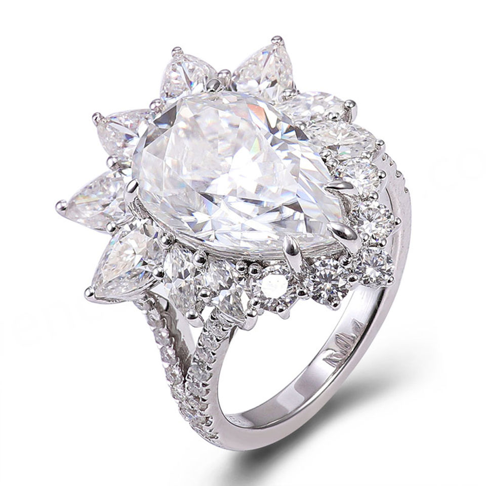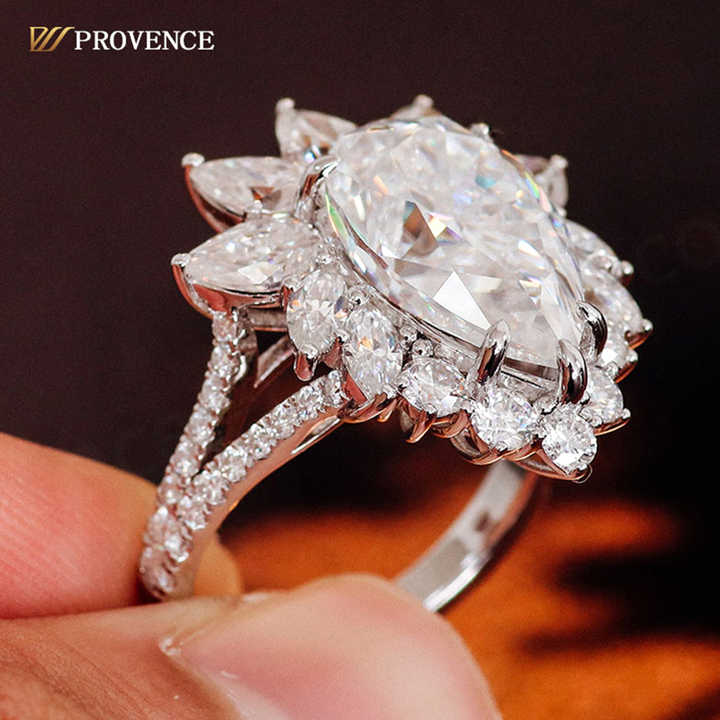 แหวนเพชรหรูหราสั่งทำพิเศษ แหวนทองคำแท้ 14k เครื่องประดับชั้นดี แหวนมอสซาไนต์ทรงหยดน้ำสำหรับขอแต่งงาน แหวนแต่งงานสำหรับสุภาพสตรี
