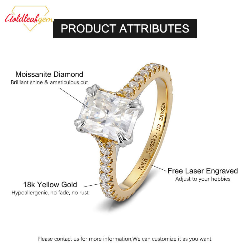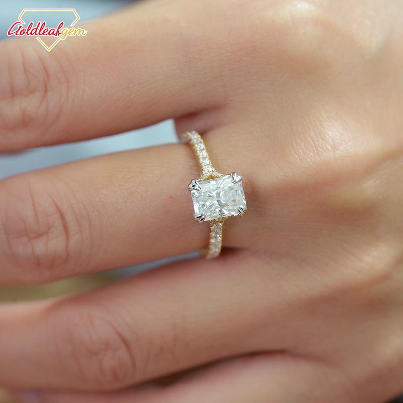 แหวนหมั้นหรูหราสั่งทำพิเศษ ทองคำ 18k สีเหลือง ทรง Radiant Cut 2 กะรัต ประดับด้วยโมอิสซาไนต์ ได้รับการรับรองจาก GRA สำหรับงานแต่งงานและงานเลี้ยง