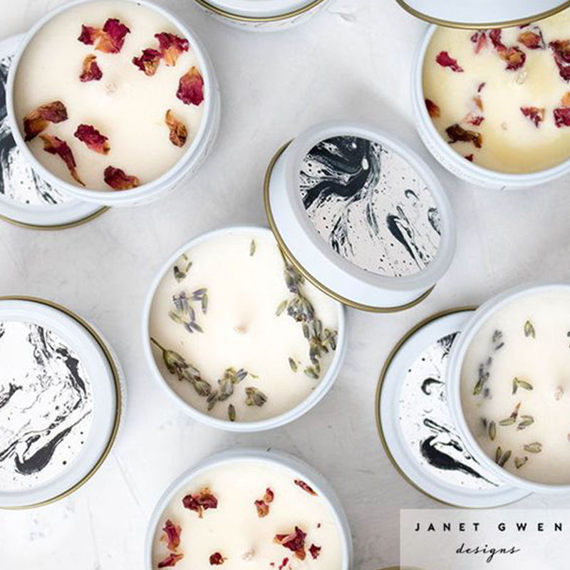เทียนหอมคริสตัลถั่วเหลืองกลิ่นหอมหรูหรากำหนดเองได้ขวดดีบุกสำหรับตกแต่งบ้านบ้านสำหรับงานเฉลิมฉลองวันหยุด-Diwali