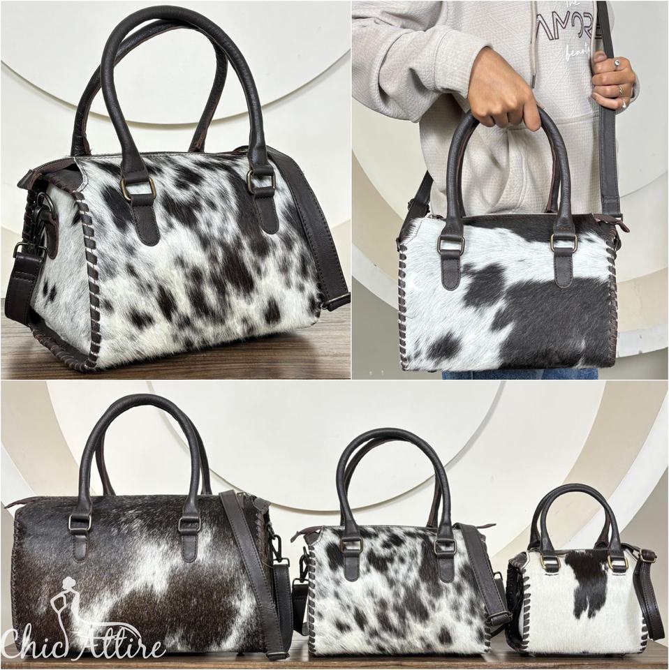 กระเป๋าเดินทางหนังวัวแท้ 100% สีดำและสีขาว ขนาดกลาง รุ่น Speedy Duffle Bag พร้อมหูหิ้ว สำหรับพกพาในวันหยุดสุดสัปดาห์ หรือใช้เป็นกระเป๋าออกกำลังกายสุดหรู จำหน่ายราคาส่ง