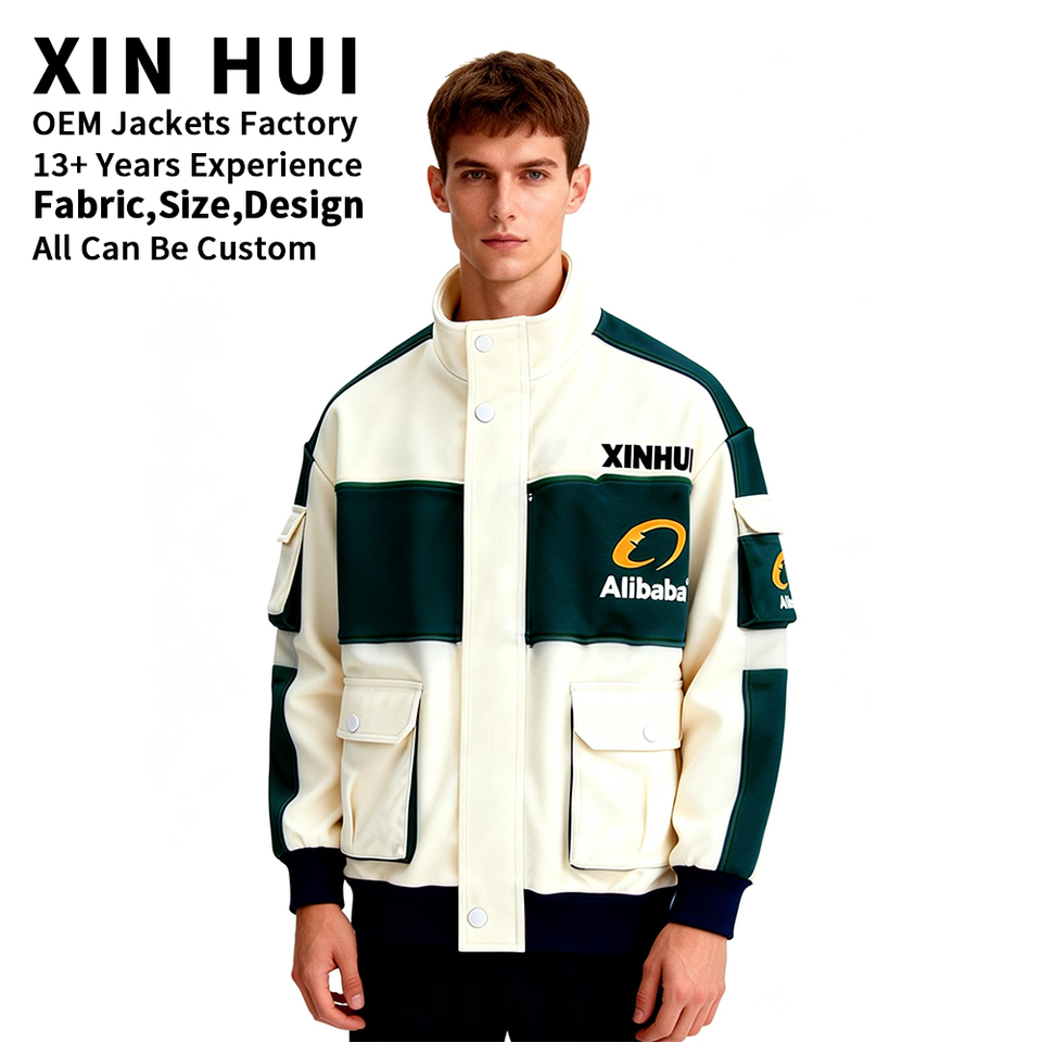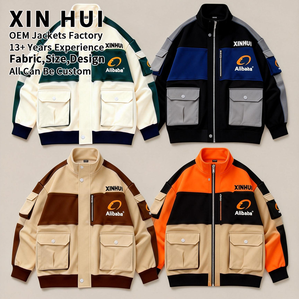 เสื้อแจ็คเก็ตผ้าแคนวาสหนานุ่มบุขนแกะสำหรับฤดูหนาว สไตล์สตรีทแฟชั่นทรงบ็อกซี่ สีสันตัดกัน ดีไซน์หลายกระเป๋าสำหรับผู้ชาย