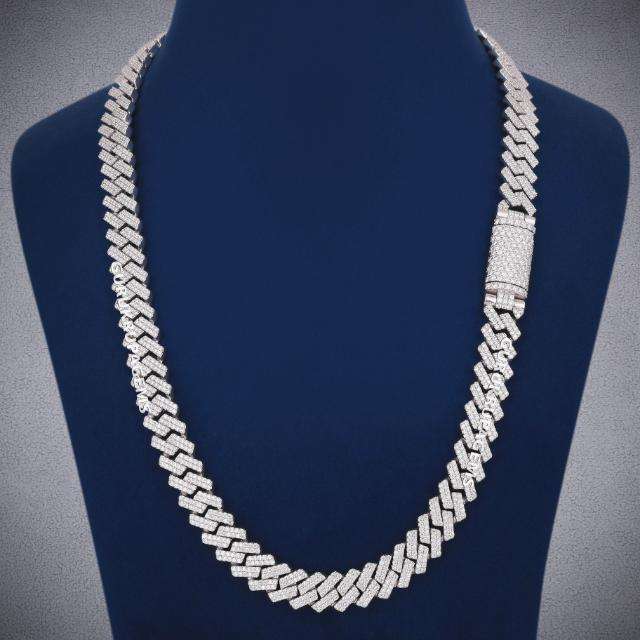 สร้อยคิวบาลิงค์แบบฮิปฮอปสุดหรู ขนาด 12 มม. ประดับเพชรโมอิสซาไนต์ VVS เงินแท้ 925 ผ่านการทดสอบเพชร เหมาะสำหรับงานหมั้นและงานแต่งงาน