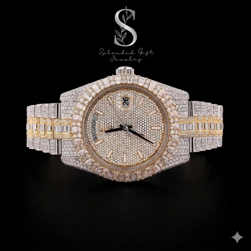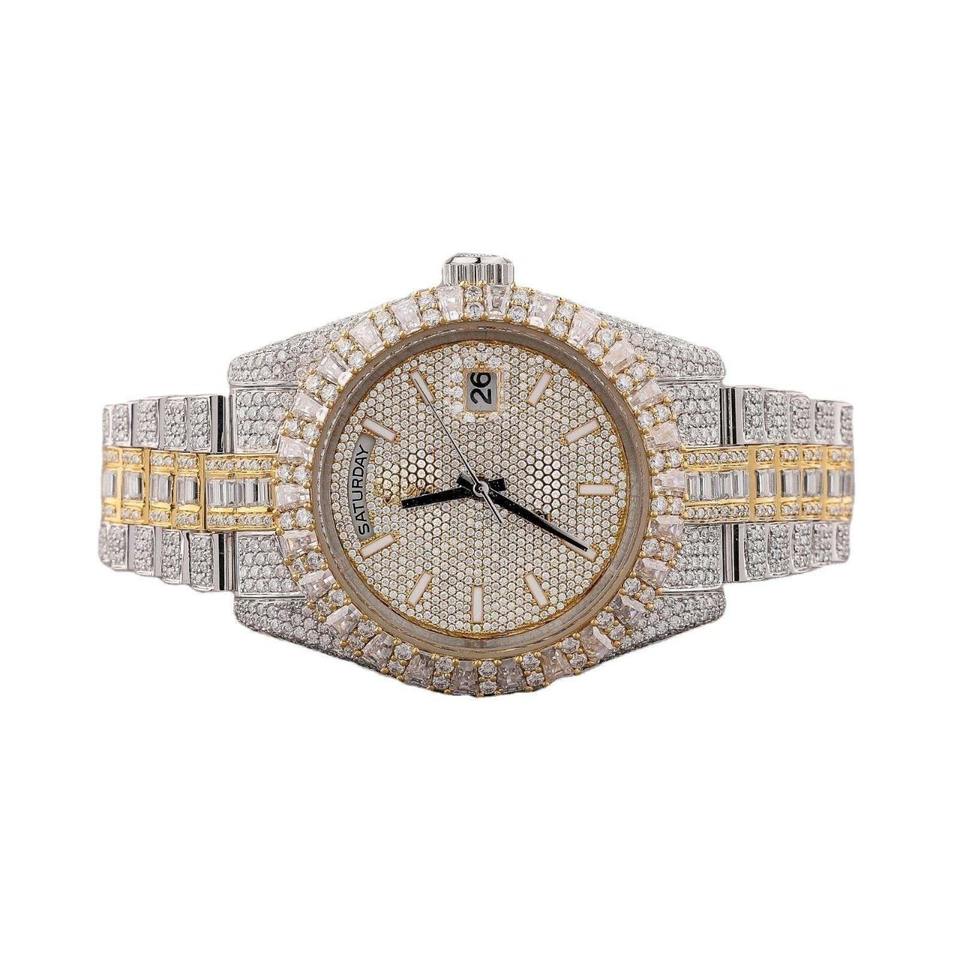นาฬิกาโมอิสซาไนต์แบบหรูหราสั่งทำพิเศษ ประดับเพชรเต็มเรือน ผ่านการทดสอบคุณภาพเพชร เหมาะสำหรับเป็นของขวัญ นาฬิกาจักรกลคุณภาพสูง