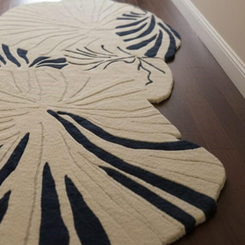 พรมขนสัตว์ทอมือรูปทรงใบไม้แบบไม่สมมาตร ดีไซน์หรูหรา สำหรับตกแต่งห้องนั่งเล่นสไตล์โมเดิร์น พร้อมแผ่นรองยางลาเท็กซ์ ของขวัญปีใหม่