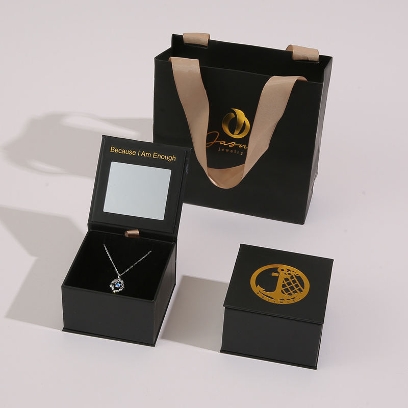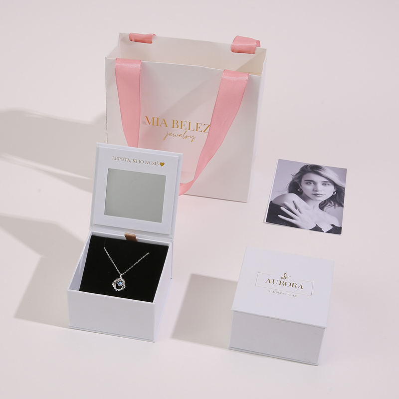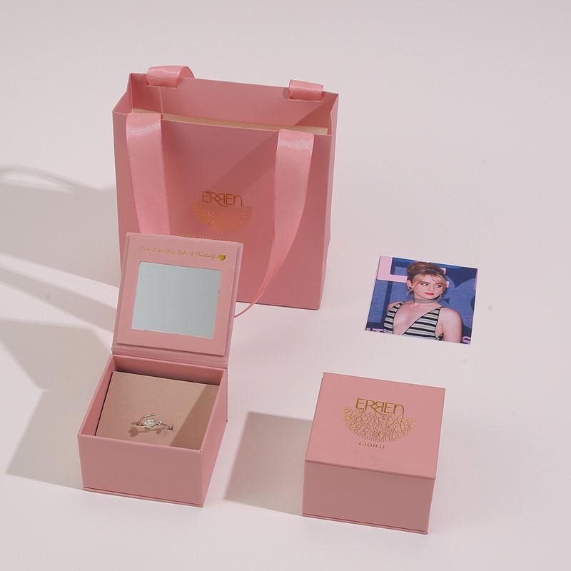 กล่องเครื่องประดับหรูหราแบบกำหนดเอง พร้อมกระจก กล่องกระดาษทรงสี่เหลี่ยม และริบบิ้น สำหรับสร้อยคอ แหวน ต่างหู และชุดของขวัญเครื่องประดับ