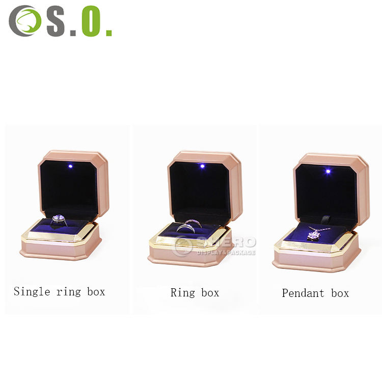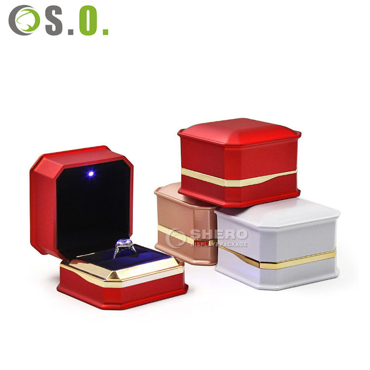 กล่องใส่เครื่องประดับสุดหรูแบบกำหนดเอง พร้อมไฟ LED กล่องเก็บของขวัญเครื่องประดับทรงสี่เหลี่ยมผืนผ้าหุ้มหนัง PU สำหรับจี้ สร้อยคอ ต่างหู แหวน