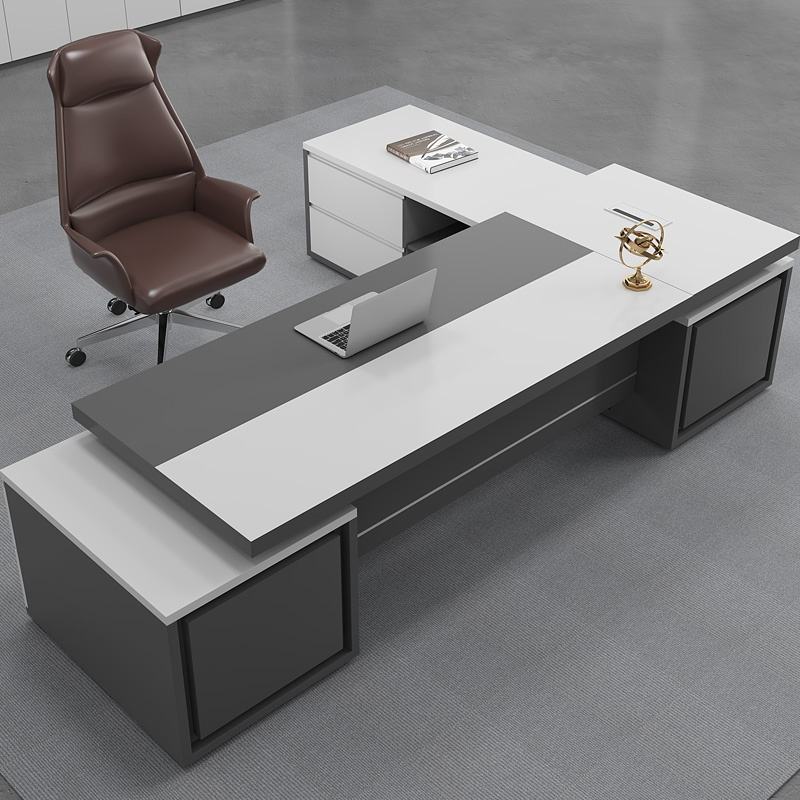 โต๊ะทำงานเหล็กรูปตัวแอลสุดหรูพร้อมไม้และเครื่องหนังดีไซน์ทันสมัยสำหรับผู้กำกับผู้จัดการฝ่ายลูกค้า