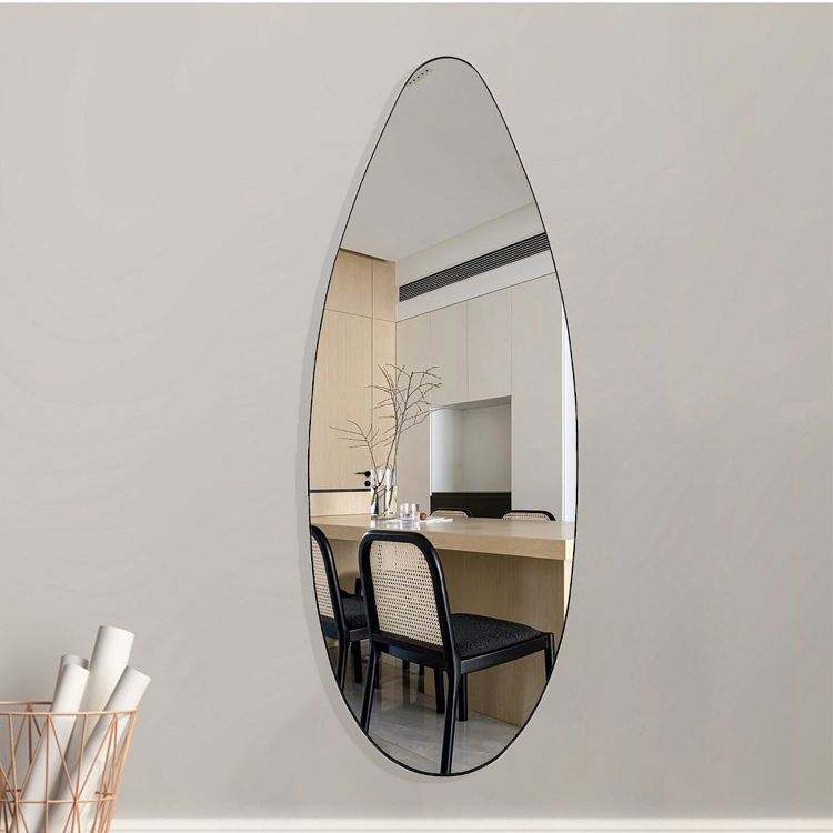 กระจกแต่งตัวติดผนังทรงยาวขนาดใหญ่ กรอบโลหะสีดำ ดีไซน์หรูหรา รูปทรงไม่สมมาตร สำหรับตกแต่งบ้าน